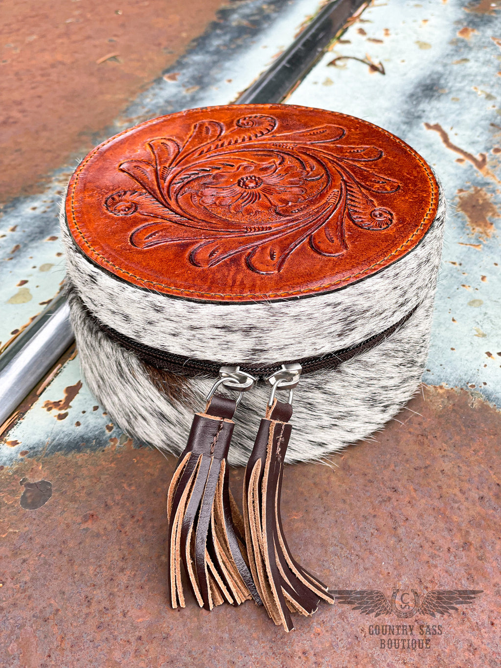 Tooled Leather & Cowhide Jewelry Case
