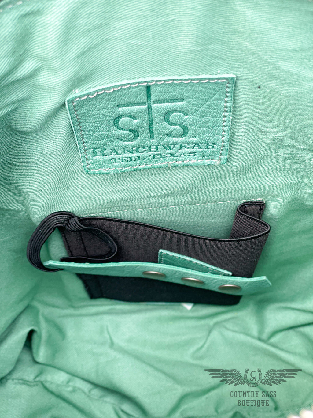 + Dark seafoam leather stitching design