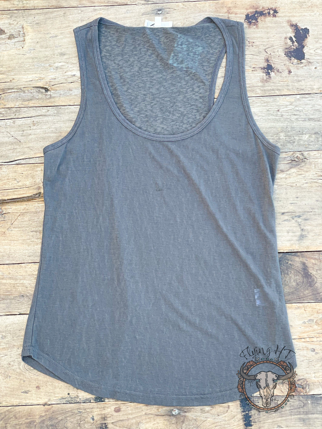 Level up your basic wardrobe with the Carbon Basic Tank - a razor-back tank made from luxuriously soft and moveable carbon grey fabric. Stand-out in the gym or around town with this stylish and comfortable tank that looks chic with any ensemble! Rock your style effortlessly with the Carbon Basic Tank!