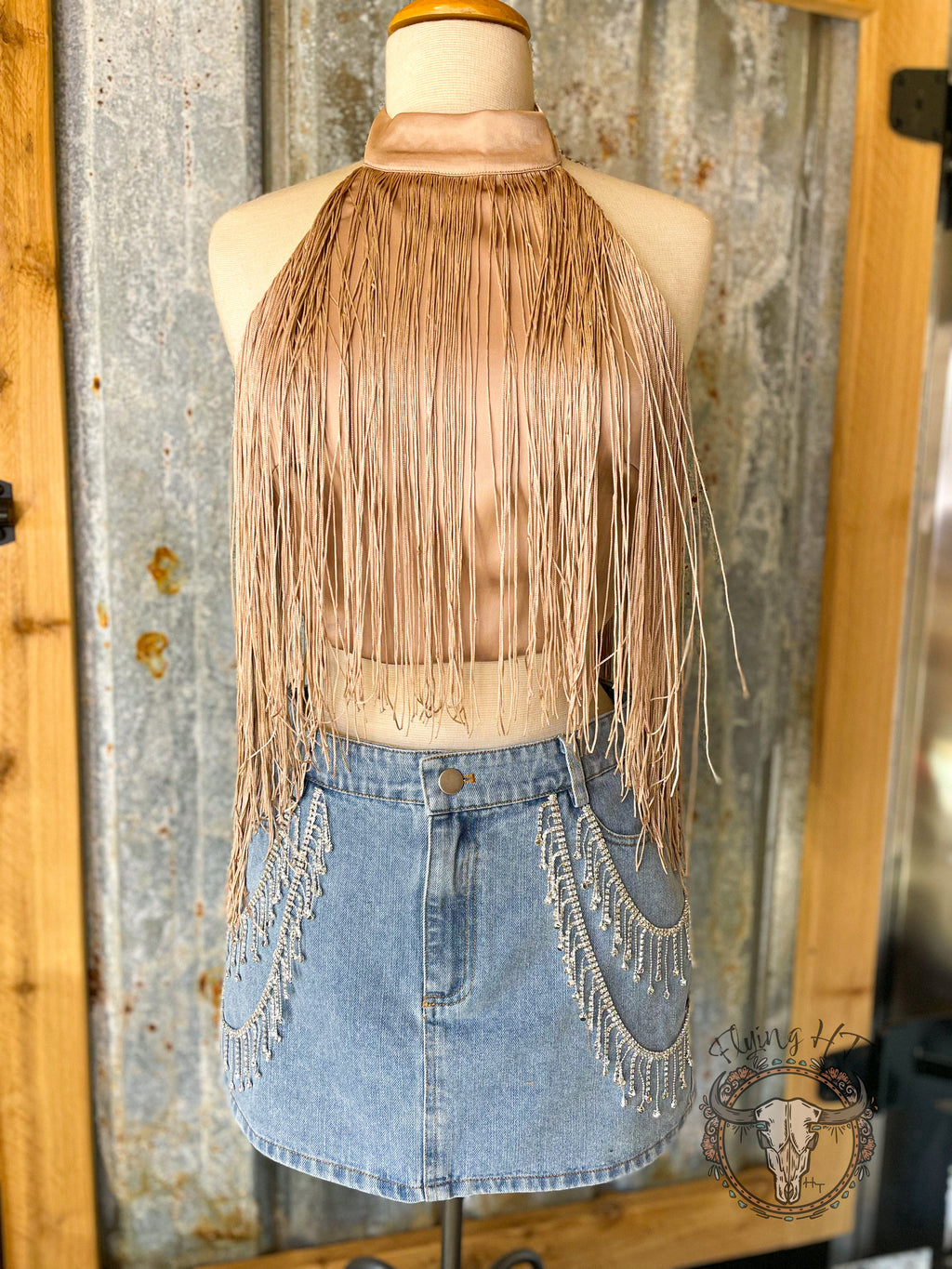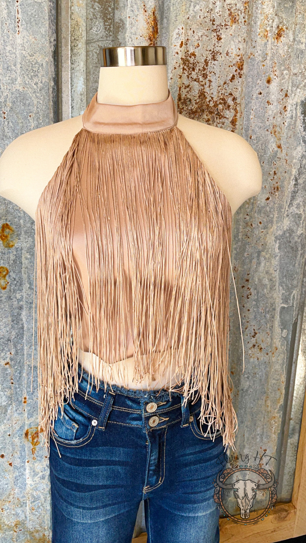 Champagne Fringe Halter Top