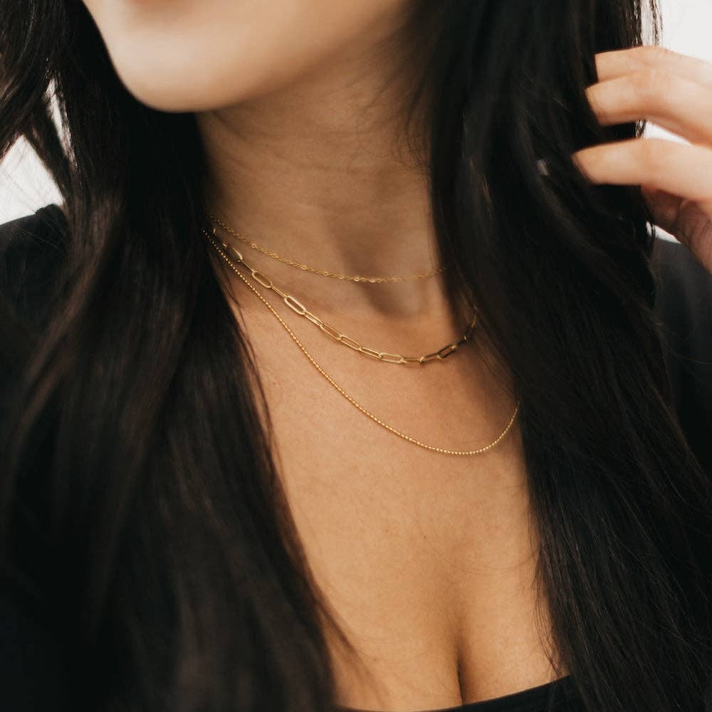Achieve a trendy layered look without any of the hassle! Our Charleston Chain Necklace is a simple statement piece with no fuss - just three layers of chain in either silver or gold, featuring a paperclip, box, and a beaded chain. Stack it on with your fave 'fits for an instant elevation!