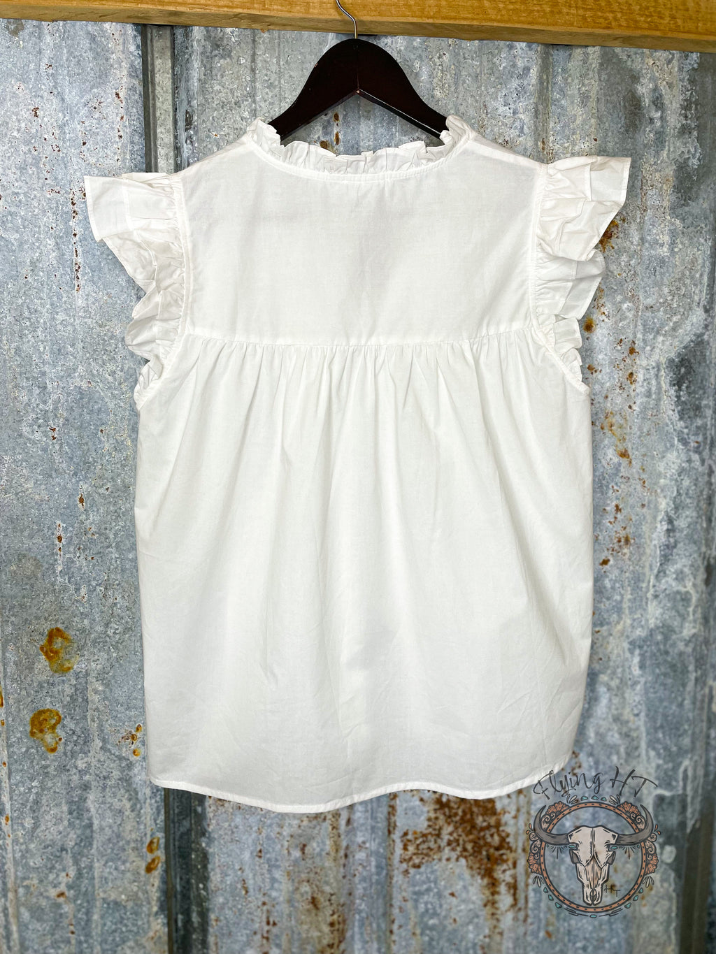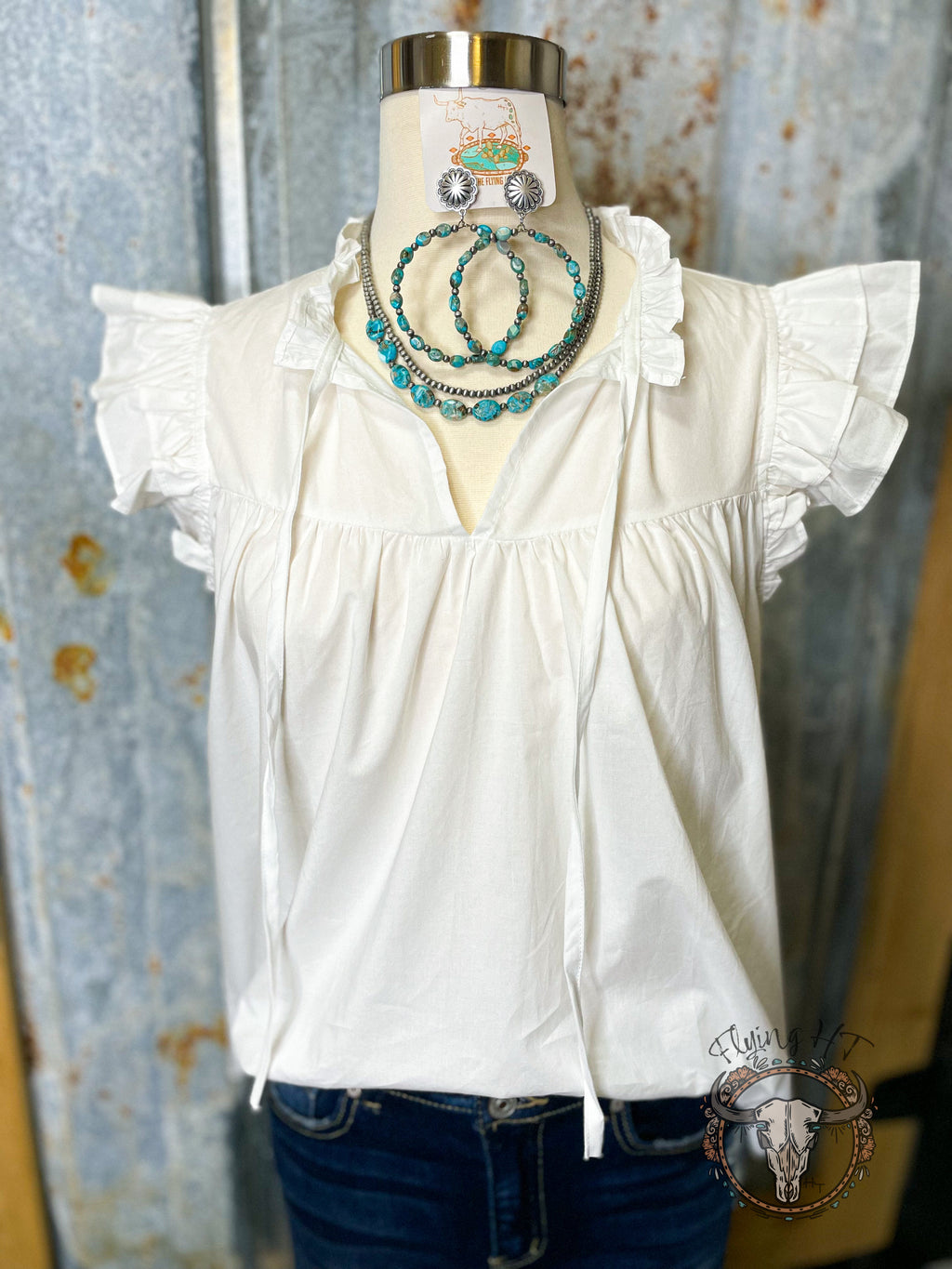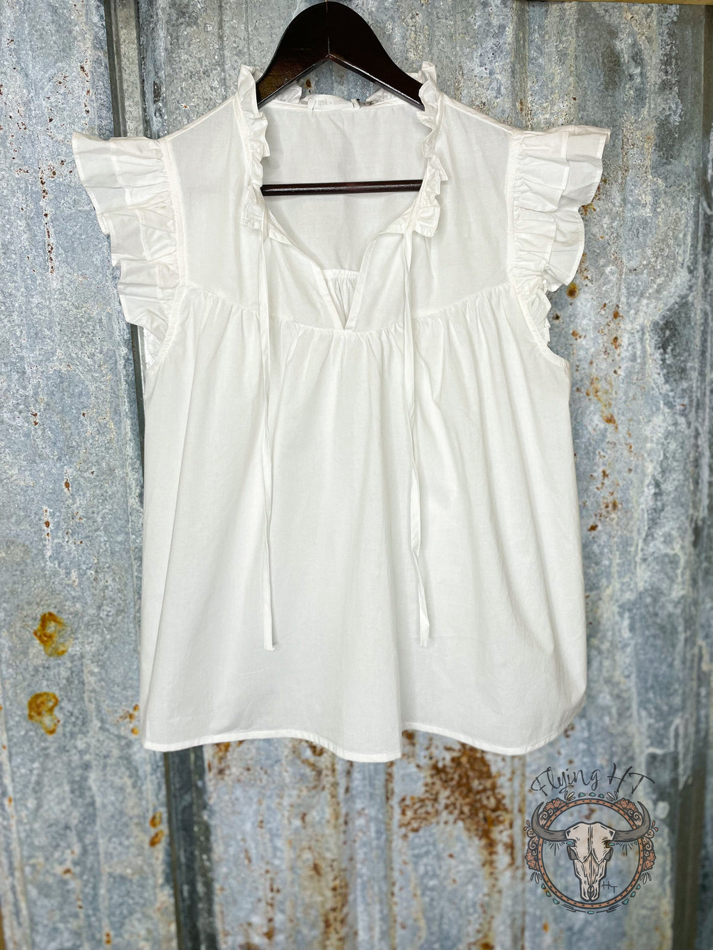 Add a touch of feminine flair to your wardrobe with our White Ruffle V Neck Top. Featuring a flowy silhouette and delicate v neck tie accent, this top is perfect for any occasion. Elevate your style and feel effortlessly chic in this must-have piece!